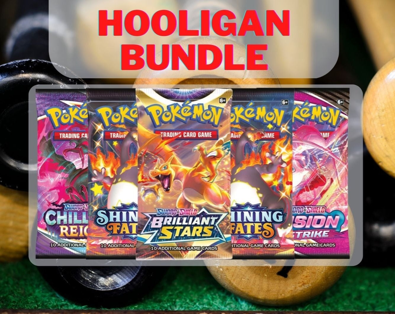 This bundle includes 1 pack of Fusion Strike, 1 pack of Brilliant Stars,1 pack of Chilling Reign, and 2 packs of Shining Fates.